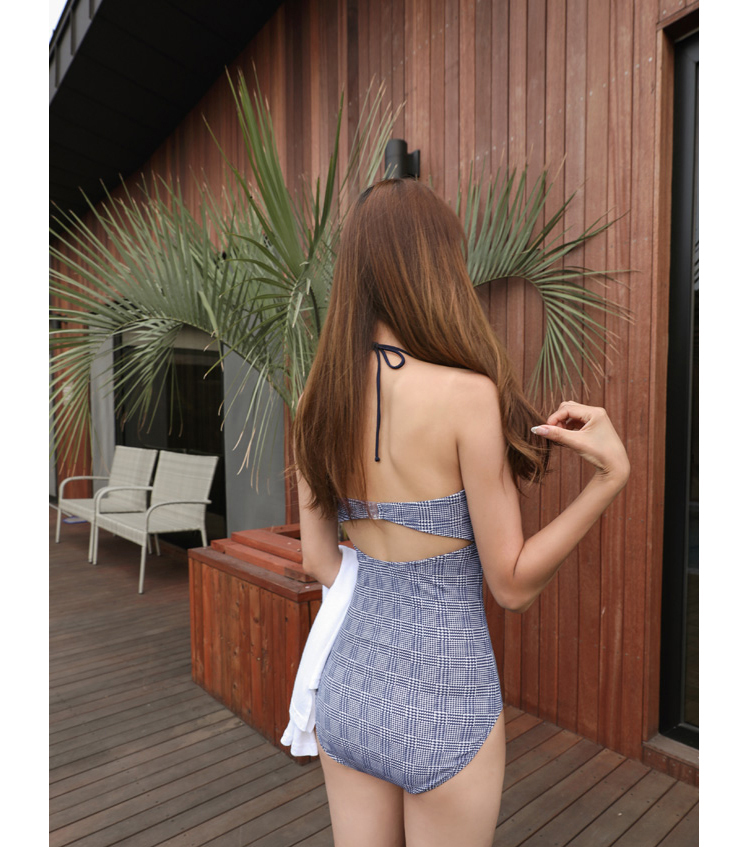 【関連キーワード】格子柄 チェック柄 ワンピース水着 大人可愛い スカラップ ホルターネック 体型カバー シンプル