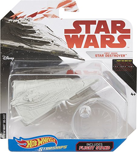 -. Binding : Toy -. Brand : Hot Wheels -. EAN : 0887961426519 -. Feature : Kids will love this assortment of iconic Star Wars vehicles / Attach the flight stand (included) to display your Starship collection / Starships are compatible with Hot Wheels Star Wars play sets (sold separately), so kids can build an entire galaxy of play! / Makes a great gift for kids, collectors and Star Wars fans of all ages / Collect them all! -. IsAdultProduct : 0 -. Label : Mattel -. Manufacturer : Mattel -. Model : FBB30 -. MPN : FBB30 -. PackageQuantity : 1 -. PartNumber : FBB30 -. ProductGroup : Toy -. ProductTypeName : TOYS_AND_GAMES -. Publisher : Mattel -. ReleaseDate : 2017-08-24 -. Studio : Mattel -. Title : Hot Wheels Star Wars First Order Star Destroyer Vehicle -. UPC : 887961426519 -. Warranty : 1 year warranty against manufacturer defects