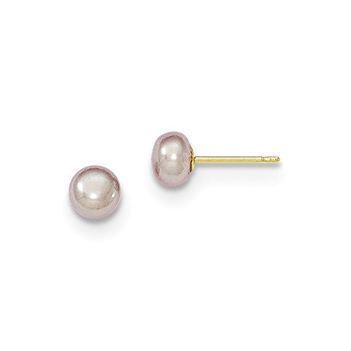 Solid 14k Yellow Gold 5-6mm Purple Button FW Cultured Pearl Stud Earrings