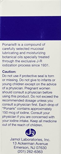 Studio : Jamol Laboratories Inc Publisher : Jamol Laboratories Inc Binding : Health and Beauty Product Description This cold season reach for all-natural Ponaris to relieve your stuffy, congested nose, post-nasal drip, and nasal dryness. Once standard in NASA's medical space kit, this effective formula contains oils of pine, eucalyptus, peppermint, cajeput, and cottonseed. Ponaris is a compound of carefully selected mucosal lubricating and moisturizing botanical oils, specially treated through the exclusive J-R iodization process since 1931. 0
