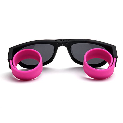 New slap sunglasses Good for outdoor activities such as snowboarding, golf, hiking, horseback riding, biking, rave, music festivals, etc.... Celebrity endorsement. Unisex men women sunglasses. FashionSTURDY CONSTRUCTIONMade of sturdy silicone plastic, our temples and bridges are built to last long-term. Wear them, fold them, and carry them anywhere, anytime for a loyal companion that protects your eyes in any weather. Our 43 mm deep lenses are built thick to effectively shield your eyes from sunlight. At 53 mm wide, they fit adults and children alike. Where else can you find a pair of sunglasses so sturdy, yet also foldable and portable?