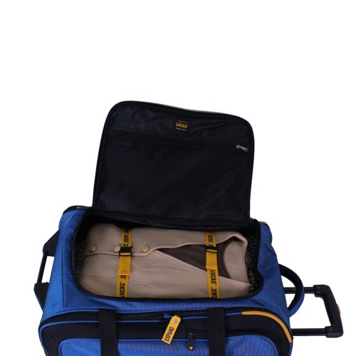 -. Binding : Apparel -. Brand : Lucas -. ClothingSize : One Size -. Department : lage -. Feature : Carry On Sized - Lage designed to fit in most airlines overhead compartments; may not conform to some airlines carry-on standards. / Hybrid 2 wheel lage with large exterior pockets / Lightweight / Multi-Stage locking handle with ergonomic grip / Spot Clean -. Label : Lucas -. Manufacturer : Lucas -. ProductGroup : Apparel -. ProductTypeName : LAGE -. Publisher : Lucas -. Size : One Size -. Studio : Lucas -. Title : Lucas Accelerator 22 Inches Bag