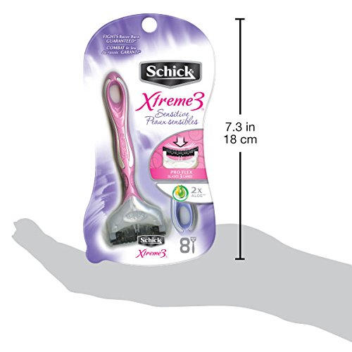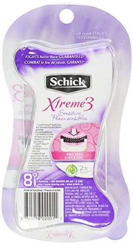 Schick Xtreme 3 Disposable Razors for Women Sensitive Skin Shaving Razor - 8 Count (Pack of 2)