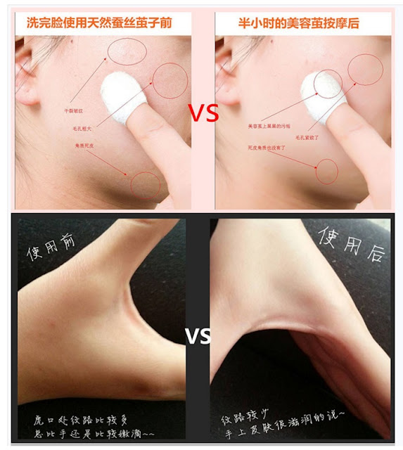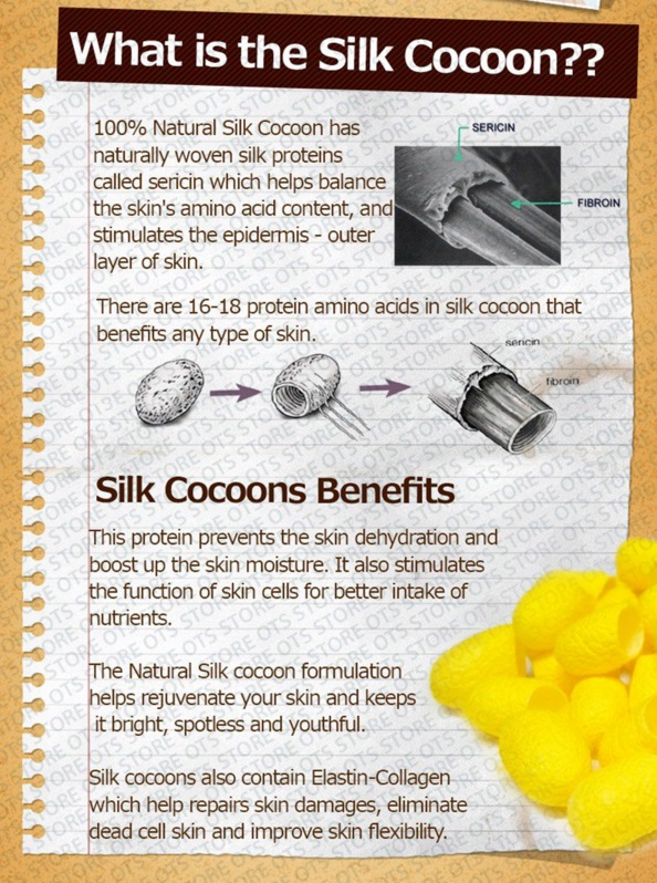 Silk Cocoon has plenty of moisturizing factor of Silk Protein & Sericin. Also contain natural anti-aging element, such as woven silk protein, amino acids and collagen. Helping to heal chapped skin reduces skin wrinkling and prevent skin damage from dust, UV, acid alkali, anti-oxidize, anti-inflammation. Effectively remove black head, whitening dark spots and dead skin cells. Make your skin look younger and smooth as silk. 100% natural and chemical free, gentle for skin, suitable for all skin type and age.