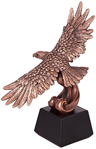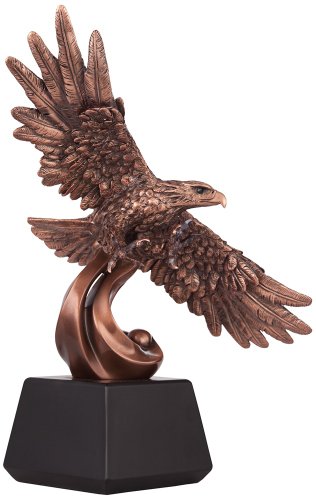 -. Feature : Soaring American eagle sculpture. / Finely detailed wings and features. / Bronze finish. / Electroplated for added durability. / Cast resin construction.