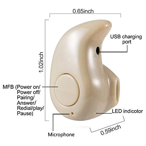 KEDSUM Mini Wireless Bluetooth 4.0 Invisible Earphone Headset Headphone Inear Earbud Support Hands-free Calling-Coffee