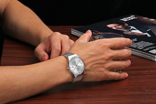 WWOOR 손목시계 라운드 슬림 초박형 비지니스 쿼츠 시계 방수 남성 은색