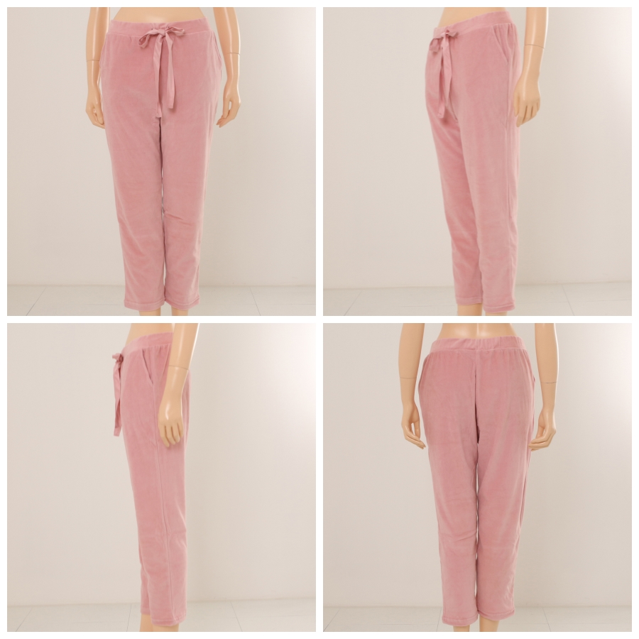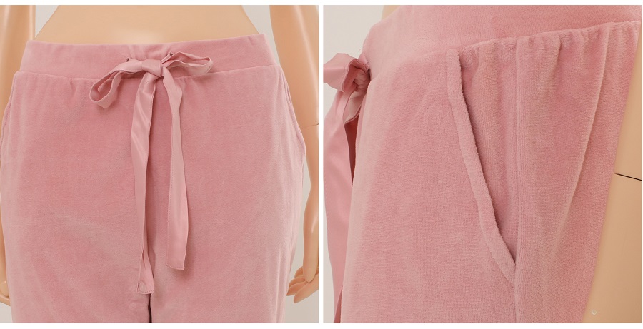 상의와 하의 허리단 부분에 사틴 리본끈을 포인트로 주어 발랄한 이미지를 연출합니다.