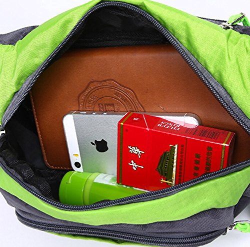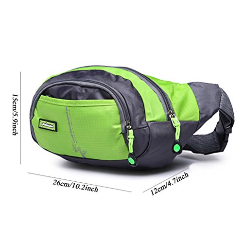 -. Feature : Material:nylon,which is washable,durable and tough. / Size:26x12x15cm/10.24x4.72x5.91inch(LxWxH). / Adjustable strap with plastic buckle.The waist straps can be adjust to a comfortable length easily as you like. / Four zippered compartments good enough to carry your money, keys, credit cards, passport,sunglasses,cosmetics,tissue,cash, smartphone and other valuables. / Ideal for outdoor sports like hiking, camping, climbing, cycling,and travel use.Stylish design suits both for men and women.