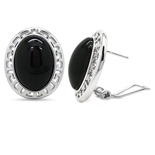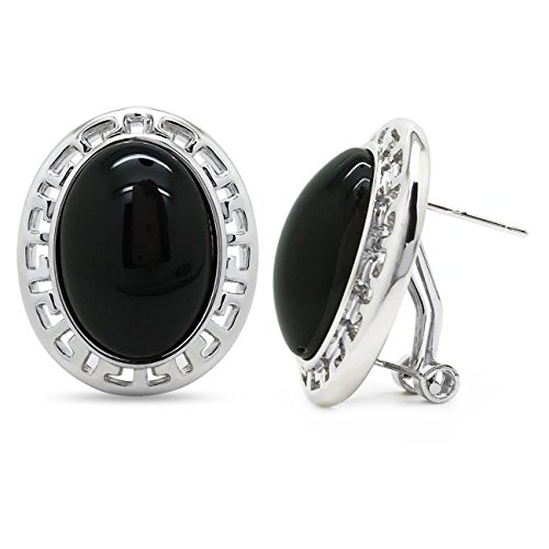 Made of alloy base metal, these classic oval shaped earrings are showcasing black resin with greek key detailings. Omega post backings secured these earrings with ease and comfort. These fashion omega stud earrings will make the perfect choice for your special someone for Valentine's gift, Christmas gift, Mothers day gift, Birthday gift, Anniversary Gift, or Bridal party gifts.Feature
