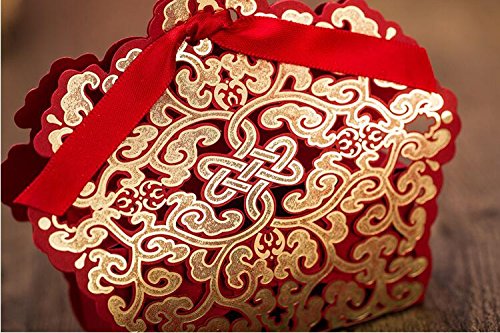 Since 50 pcs Red Laser Cut Wedding Favor Boxes Candy Box Casamento Wedding Favors And Gifts