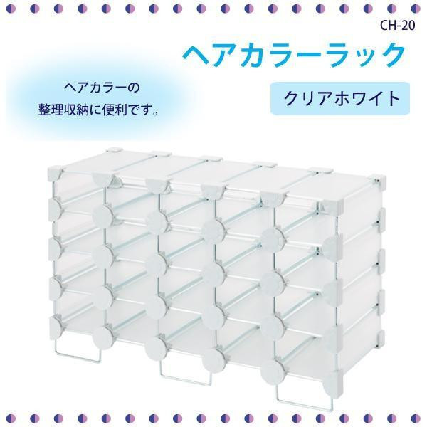 ヘアカラーが20本収納できます。収納部はマス目状になっていますので、ケースから出したチューブのままでも出し入れができます。 製造国:日本 素材・材質:PP、スチール 商品サイズ:高さ240×幅392×奥行220mm 重量:1500g 仕様:完成品耐荷重:3000g ※サプライヤー直送品 ご注文後5~6営業日後の出荷となります【商品名】ヘアカラーラック CH-20 クリアホワイト80541