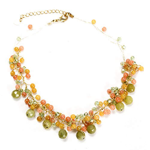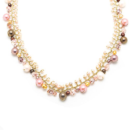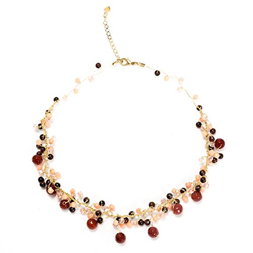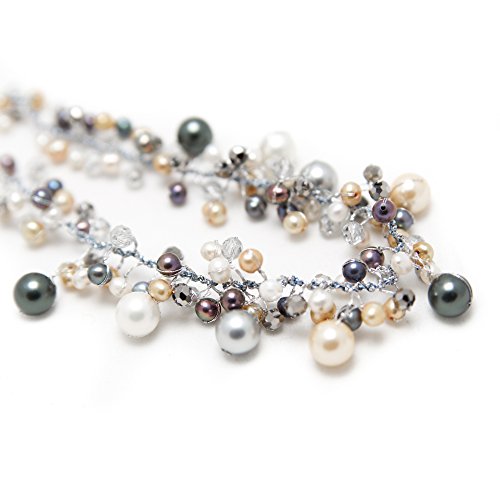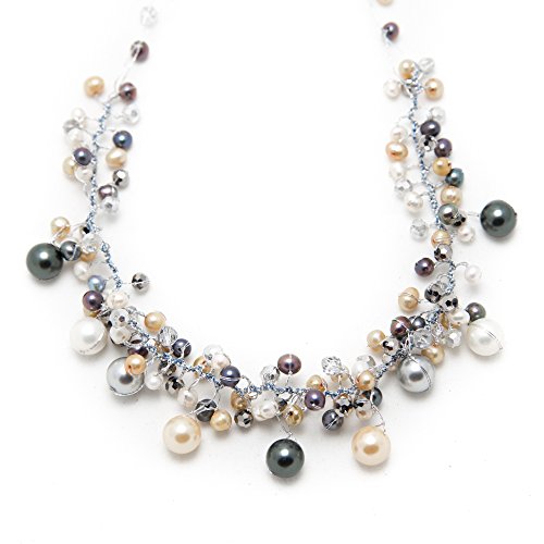 This beautiful clustered pearl necklace would be a wonderful addition to any wardrobe. The included black velvet pouch also makes it the perfect gift for someone special. Made from freshwater cultured pearls dyed in beautiful grey and gold colors with crystal beads, hand wired in the durable Silk thread and lobster claw clasp closure. Comes with 2 inches extension chain so you can adjust the length size as you wish from 17 inches to 19 inches.