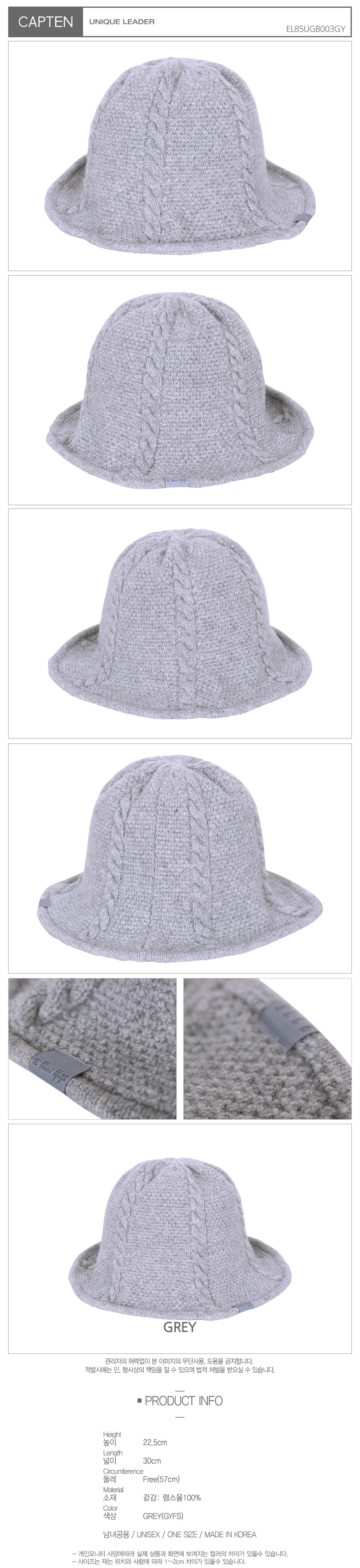 사이즈높이: 22.5cm, 넓이: 30cm, 둘레: Free(57cm)