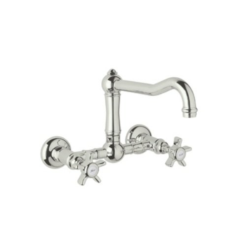 Rohl A1456XMPN-2 Country Kitchen Wall Mounted Bridge Faucet with Cross Handle and Column Spout, Polished Nickel