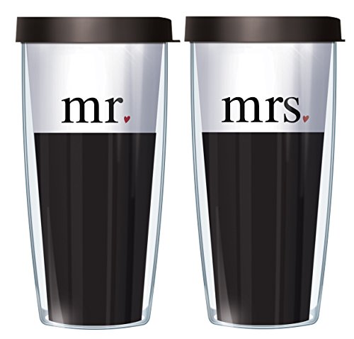 Mr. & Mrs Set Wraps Traveler 16 Oz Tumbler Cup with Black Lids