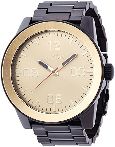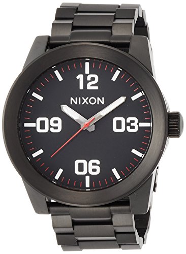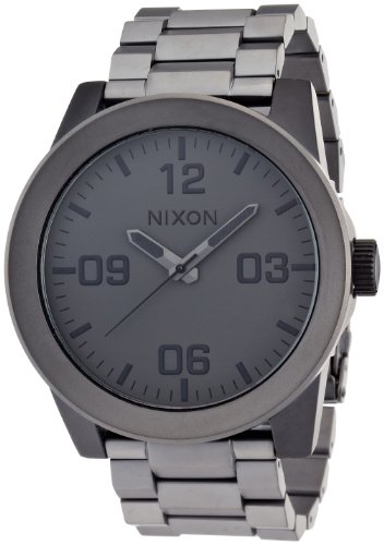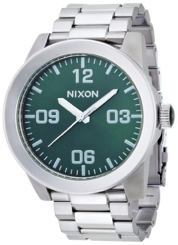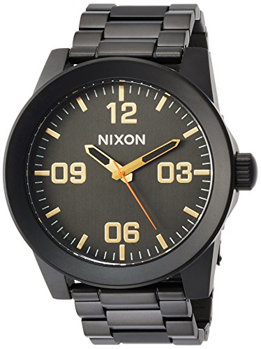 【NIXON】닉슨의 시계.정평(스테디셀러)이고, 팬 중(안)에서도 착용율의 높은THE CORPORAL SS.큼직한인 다이얼,매끄러운 곡선,그리고 밀리터리에 inspire 된 디 티《루》가 특징에서,스테인레스 밴드가 당신의 매력을 한층 더 꺼낼 것◎ 인덱스,숫자,분침,단침,초침을 밸런스 잘 배치했 심플한 문자판디자인서는,발군의 시인성을 뽐내고, 확실히『시를 잘게 썬다』이라고 하는 시계 본래의 책임으로 포커스 했 미니 말에 심플한디자인가 되고 있습니다.