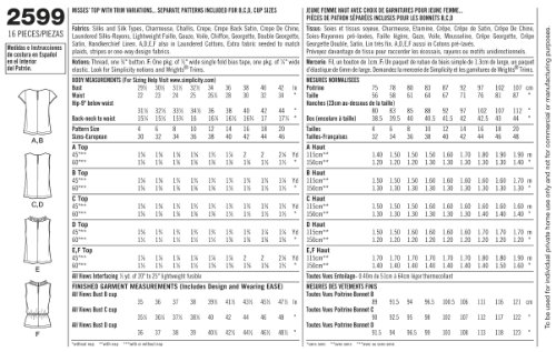 -. Title : Simplicity Sewing Pattern 2599 Misses Tops