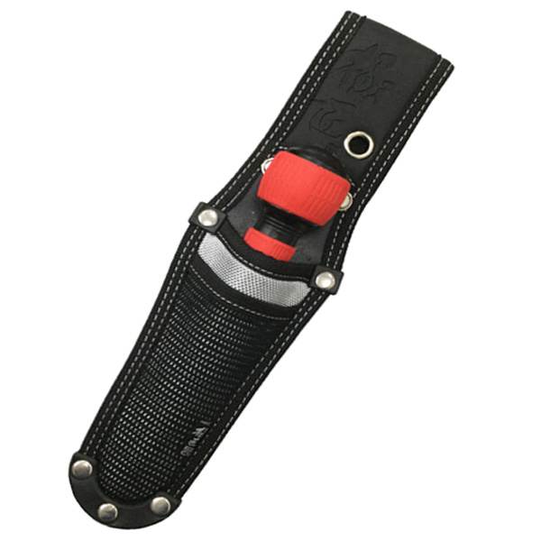 ●ダメージのかかりやすい隅部と取り出し口には補強のためのコーナーカバーを装着し、全体は太目の糸で二重縫製しているため、従来の工具差しの弱点を解消しています。ツールがしっかり収納できるサイズで設計・製造されています。(代表写真を使用しています)