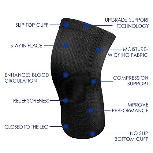 -. Feature : ✅ Knee Support: For intense physical exercise/heavy lifting, sports, jogging, joint pain relief and more. Note: CHECK SIZE CHART before ordering (5rd image from the top left) / ✅ Anti-Slip Silicone: No worrying about the knee brace will slip down your leg,it gives stable compression during gym time,squats,weightlifting,yoga etc. / ✅ Comfortable Wearing: Light weight and soft material,tight,form fitting,and breathable compression fabric maintains joint stability regardless of activity. Quick at absorbing sweat and keeps your leg dry and odor free,designed for all day comfort. / ✅ Outdoor Activity Knee Sleeve: Premium knee compression sleeves designed to guarantee seamless movement during running, jogging, cross fit, fitness, yoga, basketball, volleyball, soccer, hiking, skiing, tennis, cycling and post knee injury recovery. / ✅ Trust: Finest material is used to produce knee sleeve for arthritis,running,weightlifting along with other outdoor activities,because we care about the health and well-being of our customers.