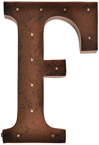 The Gerson Company "F" LED Lighted Metal Letter with Rustic Brown Finish