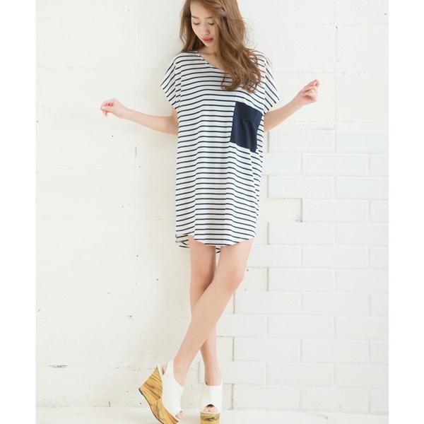 ★一枚でカワイイ!爽やかマリンボーダー★大ヒットのゆるポケットワンピが今年っぽいマリンボーダーになって登場!ゆるいサイズ感がcuteでなんとも言えないオシャレなシルエットを演出してくれます!機能性も嬉しい、配色になった大きなポケットもアクセントになってさらにオシャレな印象に!!ゆとりあるシルエットでスタイルアップ効果も期待できます!▼サイズ▼着丈:83cm 身幅:65cm 裾幅:56cm 肩幅:65.5cm▼素材▼ポリエステル65% レーヨン35%※注意事項※商品画像はできる限り実物の色に近づけておりますが、モニター・パソコン等の画像解像度により実際の商品と多少色味が異なる場合がございます。色味が異なるなどのクレームはお受けできませんのでご了承ください。海外・機械による生産のため、生地の継ぎ目に若干のズレや多少のほつれによる、形やサイズに多少の誤差が生じる場合がございます。また、混紡繊維によって生地の織りの他繊維が混紡している場合がこざいますが品質上の問題はございません。予めご了承くださいますようお願いいたします。