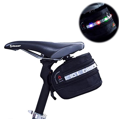 -. Title : Urvoix Bicycle Saddle Bag, Expandable Under Seat Bag with LED Lights for Night Cycling Safety, Muticolor Light