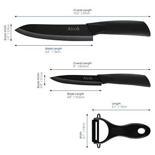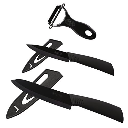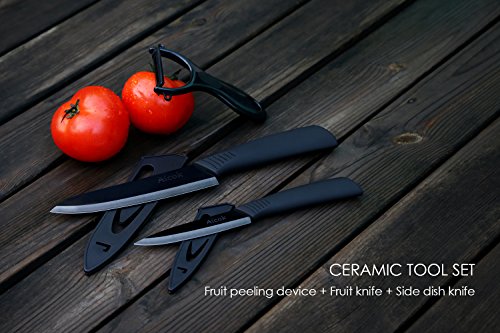 3 IN 1 PACKAGE: This set features two amazing ceramic knives, one size 6", and another 4", also and a handhold peeler. Perfect for potatoes and many other vegetables - Great for creating delicious home cooked meals.