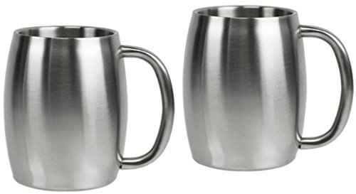 The best way to keep your morning coffee steaming-hot longer or your beer cold Double-wall construction creates thermal barrier that insulates beverages - mug stays cool to touch All food-grade stainless steel - non-rusting, strong & lightweight; no BPH, hypoallergenic & sanitary Flat bottom adds stability, rolled rim for comfortable sipping Easy-care brushed finish; dishwasher safe - holds 14 ozFeature