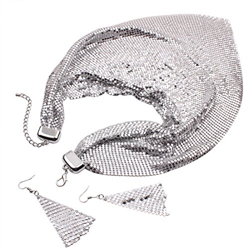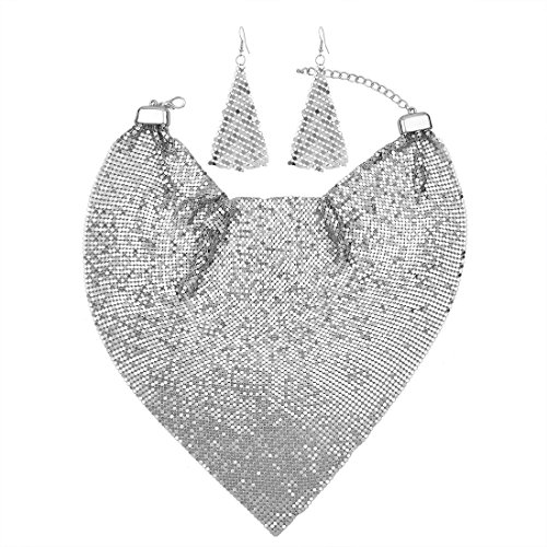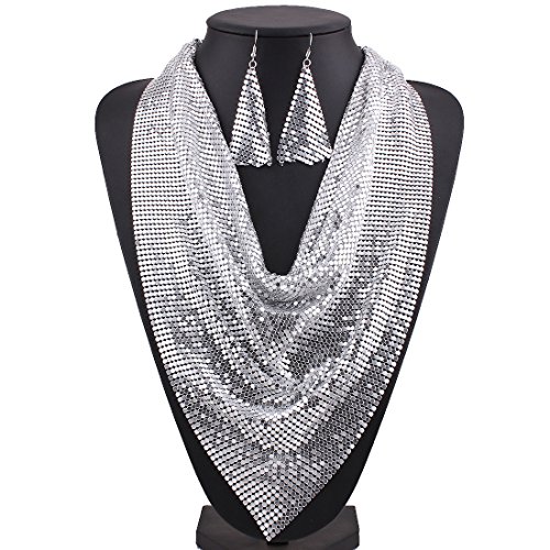 Fashion Necklace Metal Piece Scarf Necklace And Earring Set (silvery)