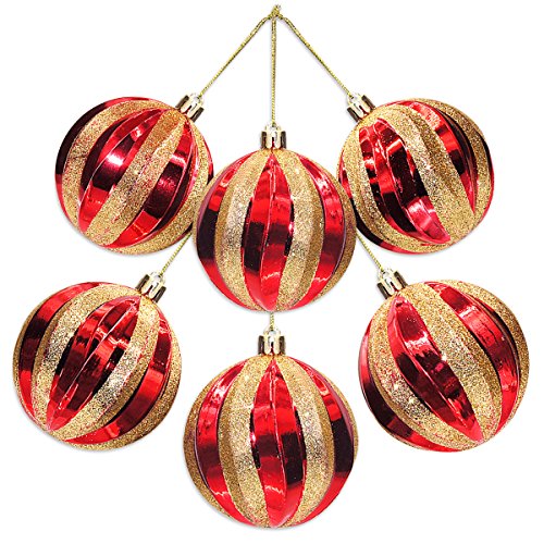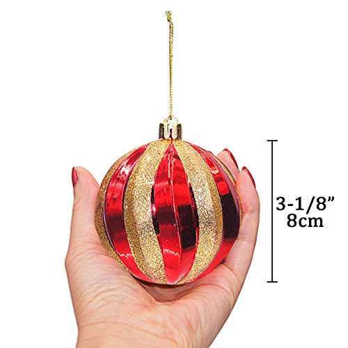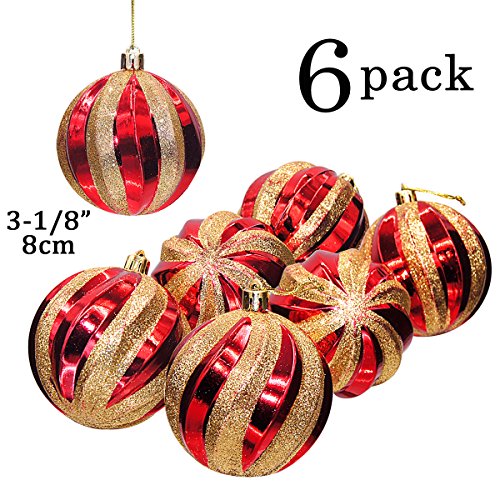 Ivenf 8cm/3-1/8" 6pcs Pack Ball Ornaments for Wedding Ceremony/Party/Holiday/Christmas Tree, Red & Golden Theme