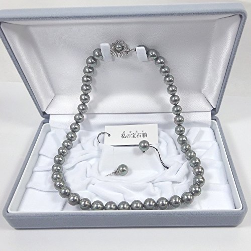 -. Title : 黒真珠ネックレス花珠貝パール・イヤリングorピアスセット/グレー9ミリ42センチ【ギフトラッピング済み】