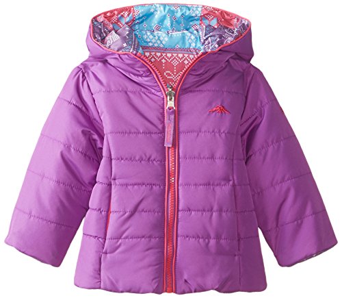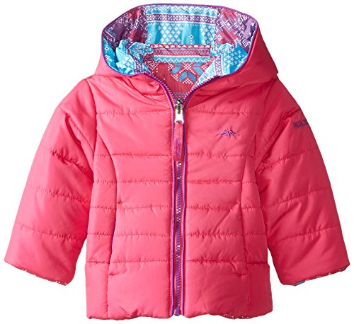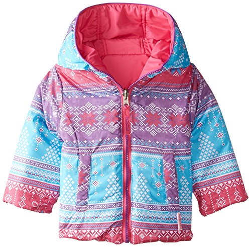 This girls fair isle print jacket reverses to a solid puffer jacket.