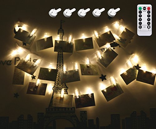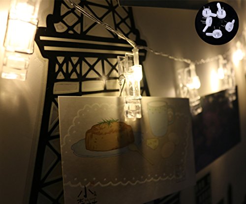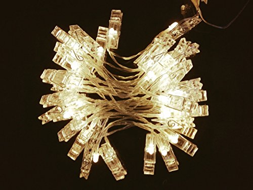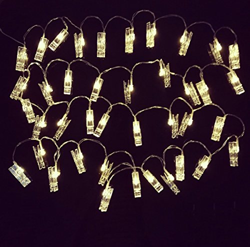 - ★40 Clear Clips Enough To Meet Your Need, Creat a cool effect for your room! Every clips equipped with a LED bulb, warm white color, can control the brightness of the light with the remote. Perfect for Hanging Photos Pictures Greeting Cards Paper Notes and etc.