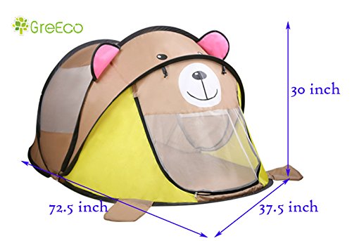 * Includes opening door and mesh windows. Lots of mesh for ventilation and blocks out strong sunlight, insects and mosquitoes from this. It also keep parents easy view of your child even when it is zipped up.
