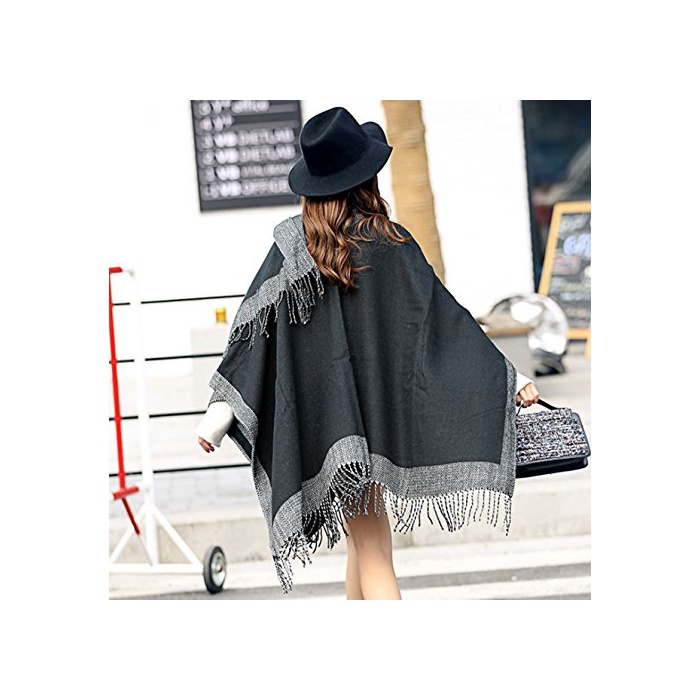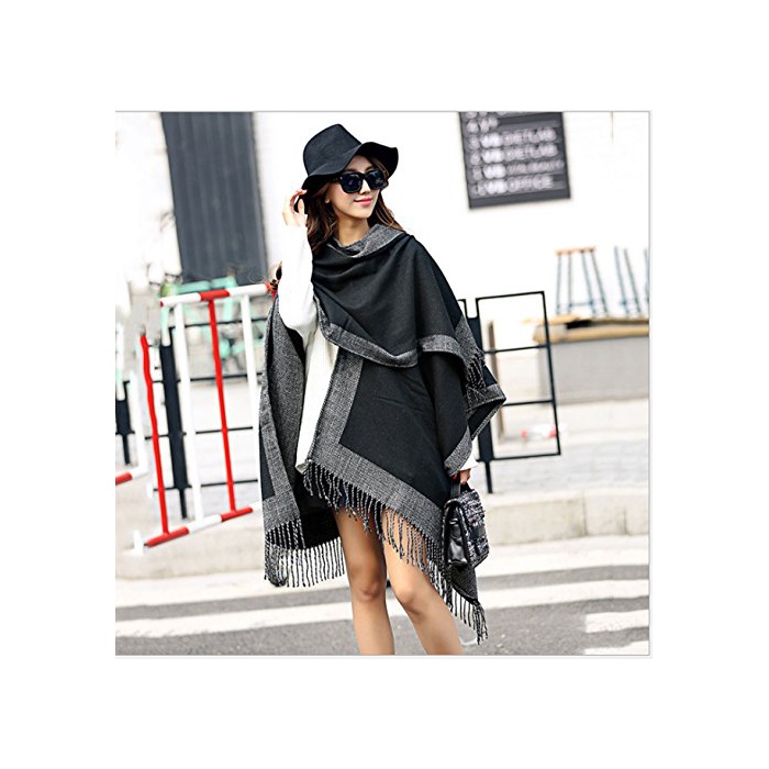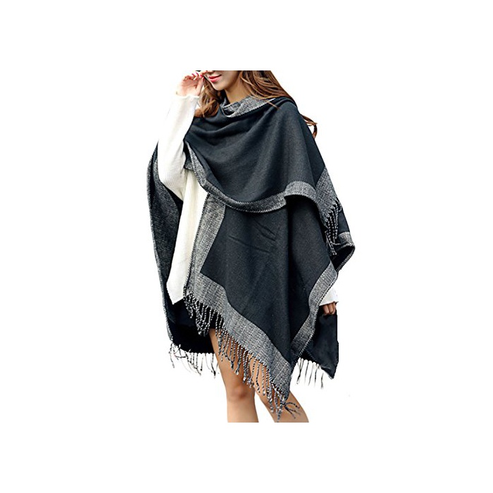 원본상품명: MIKA&MAYA ストル ショル マフラ 大判 リバシブル 和服 レディス ひざ掛け (フリサイズ, ブラック グレ)