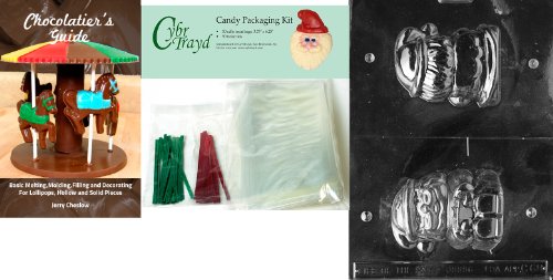 Cybrtrayd Santa Hollow Chocolate Mold with Chocolatier's Bundle of 50 Cello Bags, 25 Green and 25 Red Twist Ties and Chocolatier's Guide