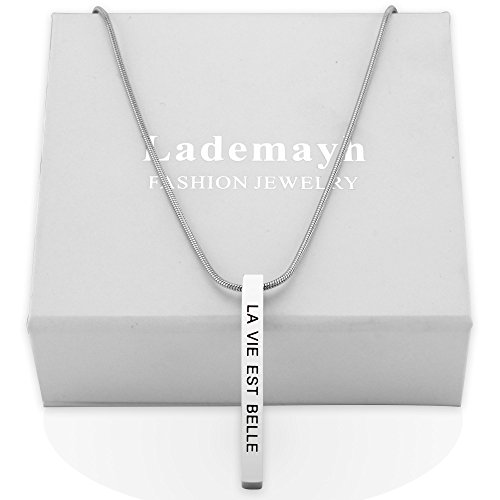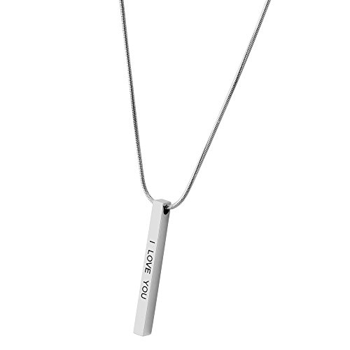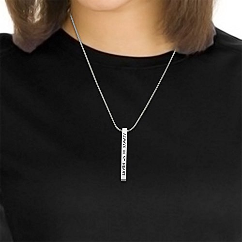 -. Feature : Inspirational words are inscribed on pendant necklace, keep loved ones in mind / Our bar necklaces are made of hypo-allergenic 316L surgical grade stainless steel, forever sparkling and never fade, anti-allergy, fit for children, seniors, and ladies. / A best way to keep these words in you mind, and also nice look. Comes with a Fine Gift Box is an excellent holiday gift for wife, sister, family and friends. / Friendly Size - The bar is 4cm long, 4mm wide and 4mm thickness, and the stainless steel snake chain is 20" long with 2" extra chain, total only 7g weight, never feel tired even though for long time wearing. / Satisfaction Guarantee - We believe that you will love our bar necklace. We will replace or refund if it is defective or if you are not satisfied with this necklace.