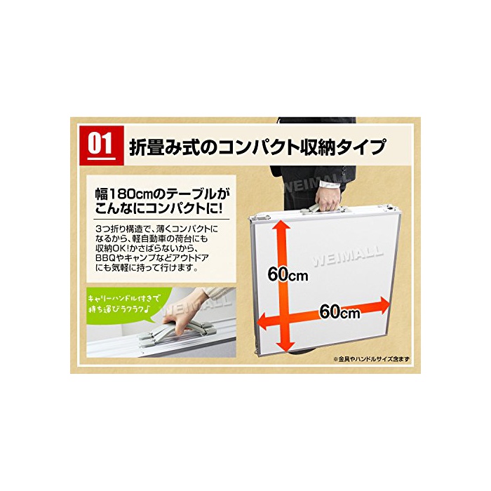 웨이 몰 【컬러 선택】알루미늄 레져 테이블 접이식 테이블 아웃도어 테이블 피크닉 테이블 [폭 180cm]