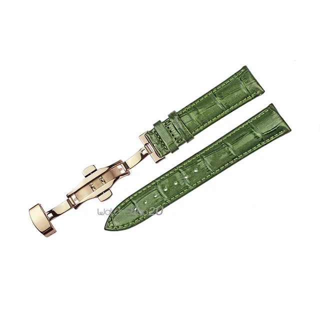 핑크 퍼플 녹색 악어 곡물 가죽 시계 밴드 스트랩 손목 Rosegold 푸시 버튼 숨겨진 배포 걸쇠 18 20 22 미리메터