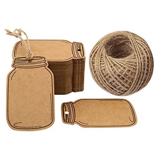 - Package includes: 100pcs brown mason jar shaped tags and 100 feet natural twine.