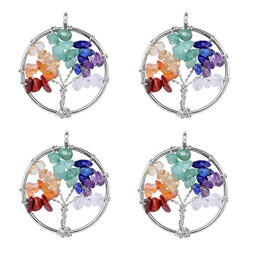 Wholesale 4 PCS Small Handmade Tree of Life Pendant 7 Charka Natural Crystal Quartz Charms Bulk for Jewelry Making