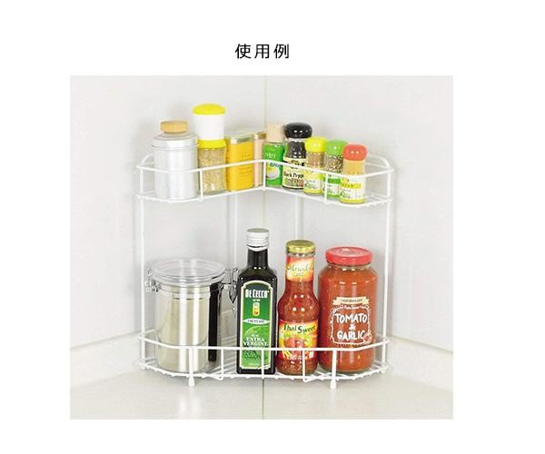 fk094igrjs調味料などを置くのに便利です サイズ (約)幅360×奥行235×高さ315mm 個装サイズ:36×24×32cm 重量 個装重量:900g 素材・材質 本体:鉄(エポキシ樹脂塗装) 保護キャップ:塩化ビニル 仕様 耐荷重:(約)上段3kg、下段3kg 製造国 中国 コーナーを使ってスペースを有効活用 調味料などを置くのに便利です