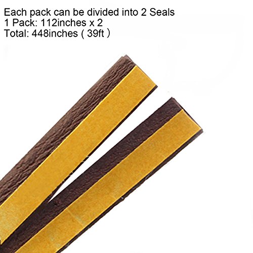 Loobani 448-inches Long Door Window Insulation Soundproofing Weather Stripping Tape, EPDM Rubber Self Foam Adhesive Weatherstrip Draught Excluder, 9mm x 2mm x 4 Seal ( I Type Brown )