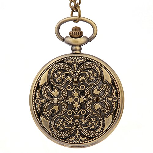 -. Title : YouYouPifa Retro Four Flower Pattern Round Hollow Big Pocket Watch