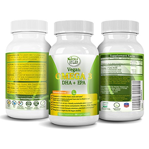 Vegetarian Friendly and Vegan approved Omega 3 DHA and EPA Supplementation from Amala Vegan is your answer! It's an all natural blend of essential fatty acids derived from algae that offer the same benefits as fish oil, but with noticeably less aftertaste. Best of all, it fits in with your dietary lifestyle!