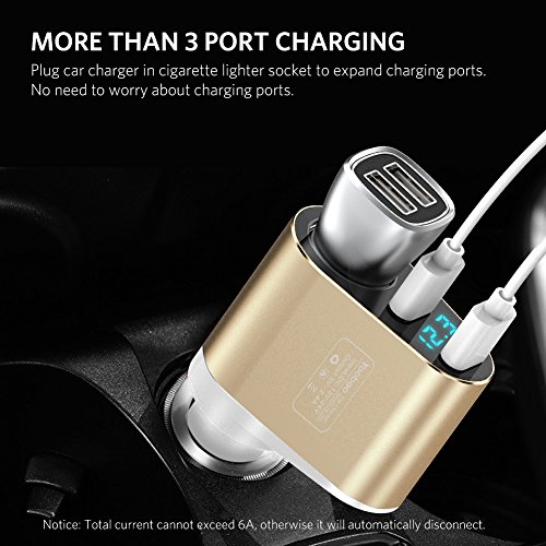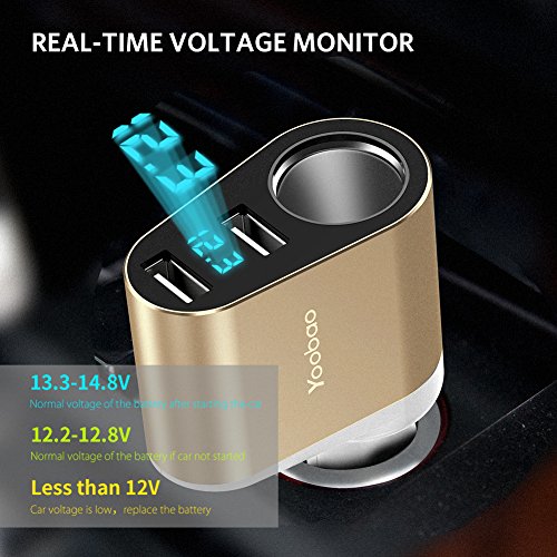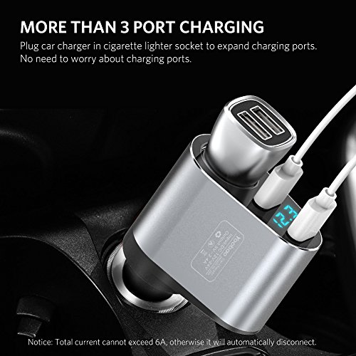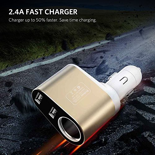 -. Feature : Cigarette Lighter Socket - Cigarette lighter socket can charge your GPS, dash cam or plug one more car charger to expand more charging ports in your 12V/24V vehicle. Excellent Solution for Charging Multiple Devices on the Road. / Dual USB Port - 2 USB charging ports with 2.4A total output enable you to simultaneously charge two devices at their max speed. / Rapid Charge - Charging up to 50% faster than normal USB car charger, just 1.5h for your iPhone 7 to charge fully. Automatic stops charging when overcharging or lower voltage. / Real-Time Voltage Monitor - The LED screen display vehicle battery voltage, and alarm you the low voltage (less than 12V) to replace the car battery. / What You Get - 1x Dual USB Car Charger, 1x User Manual,and 12-month warranty. Contact us with any questions or concerns - We are here for you.