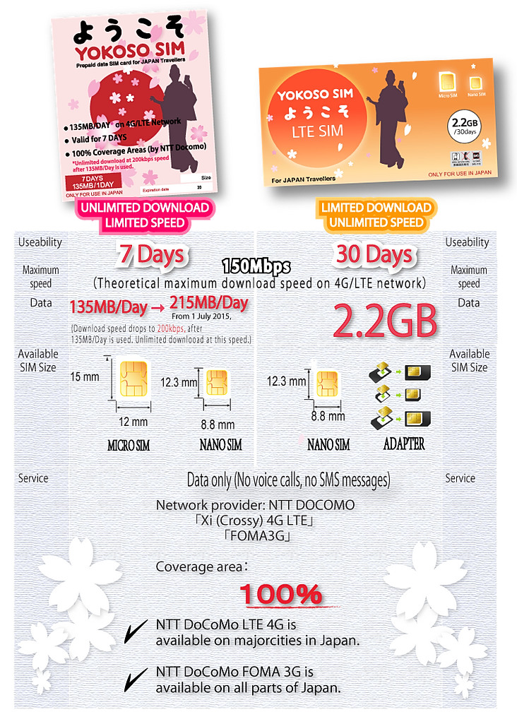 NTT DOCOMO Network provides 100% coverage in whereever you go in Japan.