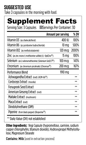 Mdrive Elite Energizing Testosterone Booster with Cordyceps, Fenugreek and KSM-66, 90 Count