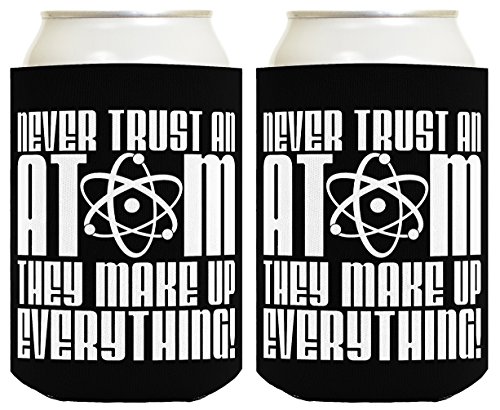 Funny Beer Coolie Never Trust an Atom 2 Pack Can Coolies Black